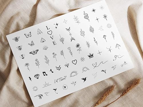 Minimalist Flowers, Waves, Snakes, Butterflies and More,65 Small Temporary Tattoos –