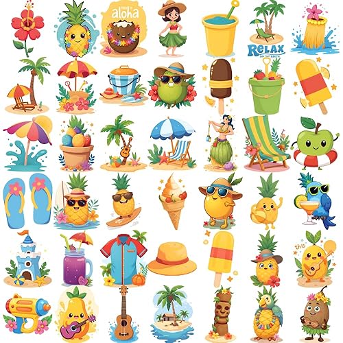 63 Pieces Hawaiian Luau Themed Tattoos, Self-Adhesive Summber Beach Plam Trees Flower Tattoos Stickers Waterproof Tropical Party Decoration Supplies for Women Girls Boys