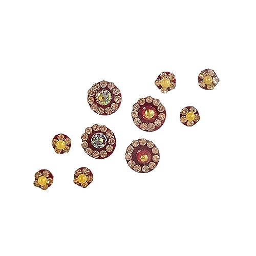Traditional Round Red Velvet Bindis Set – Multisize Self-Adhesive Forehead Bindi Pack with Golden & Stone Accents – Festival & Party Wear Accessories