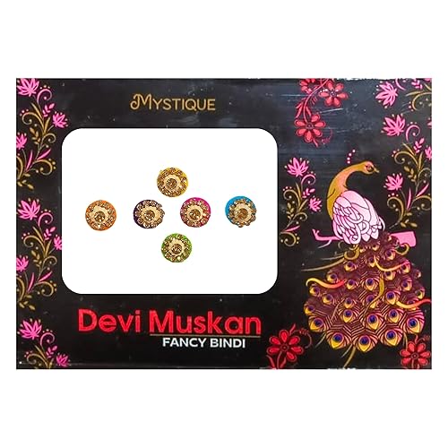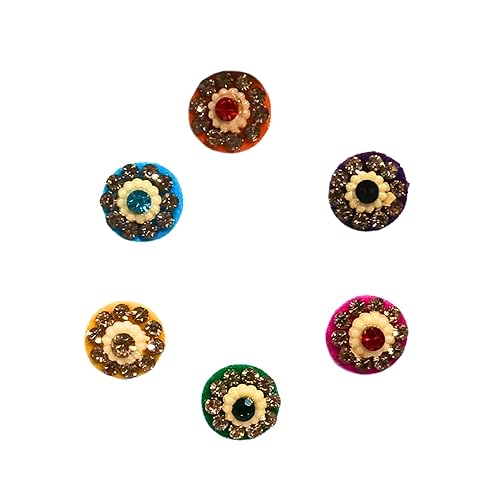 Round Multicolor Bindis with Beaded and Stone Detailing – Pack of 6 Self-Adhesive Decorative Forehead Stickers – Traditional Bindi Set for Ethnic and Festive Wear