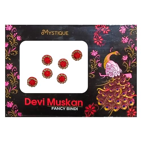Traditional Round Red Bindis with Golden Stone Work – Pack of 6 Decorative Self-Adhesive Forehead Bindi for Festive and Daily Wear