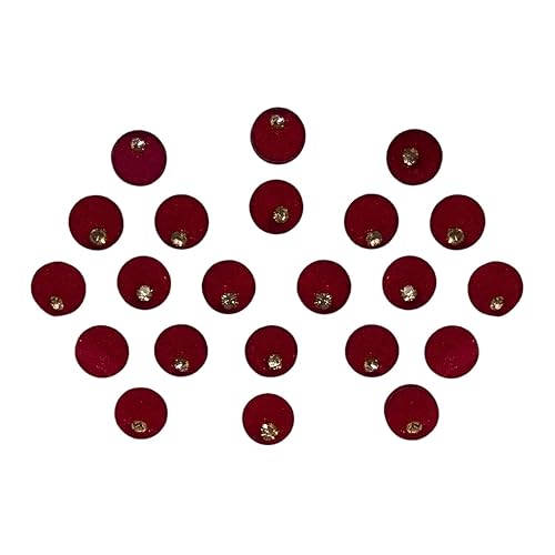 Round Pearl Center Bindis – Self-Adhesive Red Velvet Bindi Set with Golden Floral Design – Traditional Forehead Bindi for Daily, Festival, and Wedding Wear