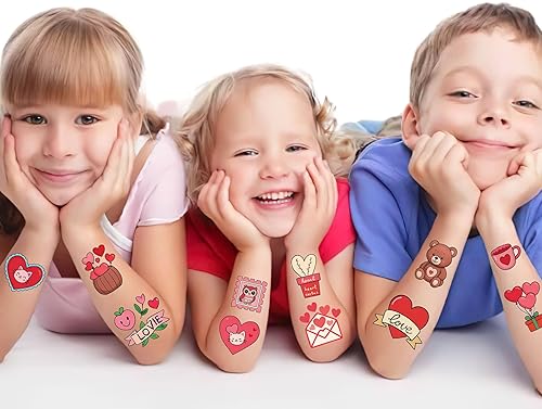 8Sheet - 110PCS Heart Love Temporary Tattoos for Kids – Cartoon Fake Tattoos Stickers for Birthday Party Favors, Gifts, DIY Decoration & Fun Activities – Waterproof & Skin-Safe