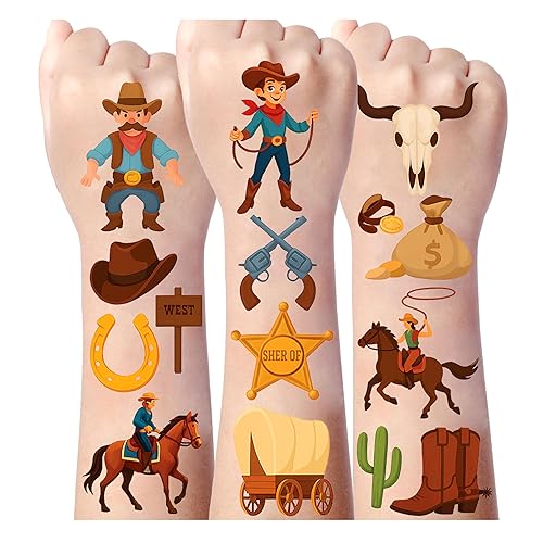 8Sheet - 110PCS Cowboy Temporary Tattoos for Kids – Cartoon Fake Tattoos Stickers for Birthday Party Favors, Gifts, DIY Decoration & Fun Activities – Waterproof & Skin-Safe (cowboy)