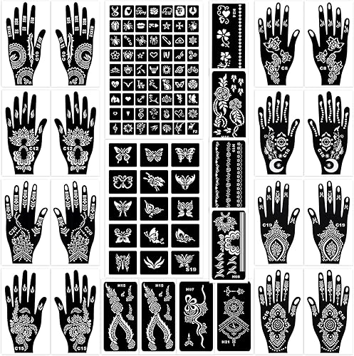 Henna Tattoo Stencils Kit 18 Sheets,Henna Stencils for Hands Temporary Tattoo Stickers for Women and Girls Face Paint Body Art