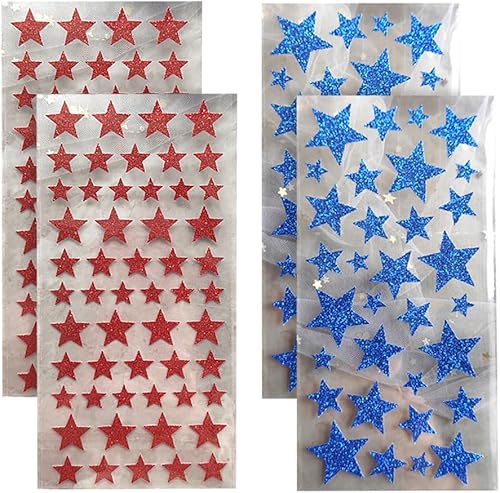GSHLLO 172 Pcs Glitter Star Body Stickers 4th of July Eye Sticker Star Make Up Stickers Self Adhesive Face Stars Patriotic Stars Decals Independence Day Skin Sticker for Rave Party
