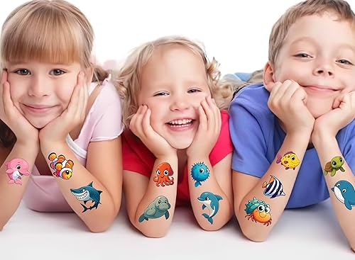 8Sheet - 110PCS Ocean Animal Temporary Tattoos for Kids – Cartoon Fake Tattoos Stickers for Birthday Party Favors, Gifts, DIY Decoration & Fun Activities – Waterproof & Skin-Safe