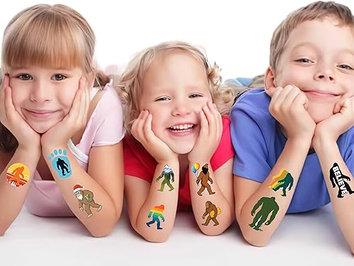 8Sheet - 110PCS Bigfoot Temporary Tattoos for Kids – Cartoon Fake Tattoos Stickers for Birthday Party Favors, Gifts, DIY Decoration & Fun Activities – Waterproof & Skin-Safe (Bigfoot)