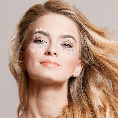 6 Sheets Star Heart Face Gems Makeup Stickers, Acrylic Moon Eye Body Face Rhinestones, Sparly Round Crystal Women Nail Facial Jewels for Rave Parties, Festivals, Daily Makeup - Colorful