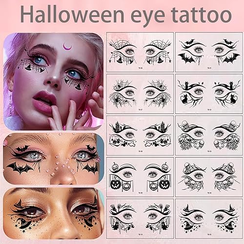 20pcs /10 Pairs Eye shadow Tattoo Sticker Temporary Eye Tattoo Makeup Transfer Stickers Eyeliner Eyeshadow Sticker Spider Web Skull Bat for Women Halloween Masquerade Party