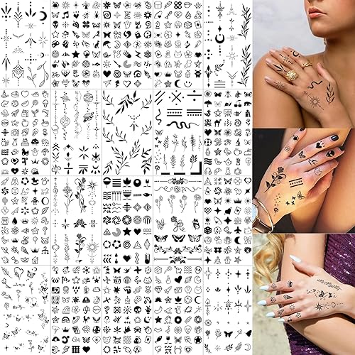 Small Finger Temporary Tattoos for Women, Realistic Cute Tiny Fake Hand Tattoo Adult Girl, Long Lasting Sexy Black Mini Temp Tatoo Sticker Bulk Kid Wrist Neck Ear Body Art, 20-Sheet