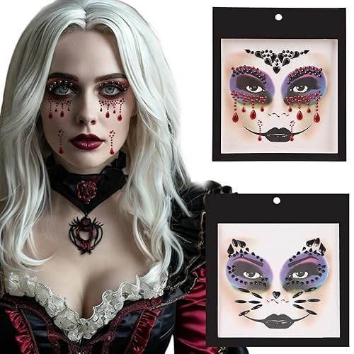 Halloween Face Jewel Gems Tattoo Sticker for Makeup Festival Rave Halloween Party Cosplay Decoration
