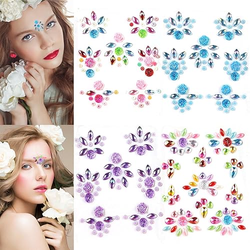 Face Gems Self Adhesive Jewels for Festival Rave Party Halloween Body Makeup Glitter Tattoo Sticker Rhinestone for Eyes Face Body Halloween Masquerade Party Accessories 4 PCS