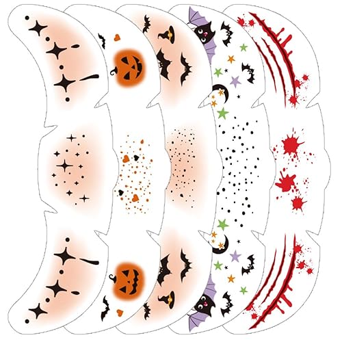 Halloween Tattoo Stickers Face Temporary Tattoos Waterproof Easy to Apply and Remove, 6 Pcs Fake Scary Tattoo Stickers for Halloween Party Costume Accessories