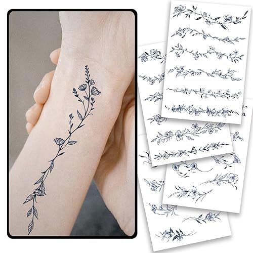 CHARLNET Semi-Permanent Tattoos for Women - 2 Weeks Long Last Line Leaves Flower Fake Tattoos for Women Neck Wrist Body/Fades Naturally/No Reflection/Waterproof/Realistic