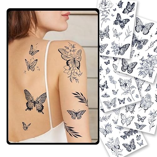 CHARLNET Butterfly Semi-Permanent Tattoos for Women - 2 Weeks Long Last,Realistic Butterfly Fake Tattoos for Body Art/Fades Naturally/No Reflection/Waterproof