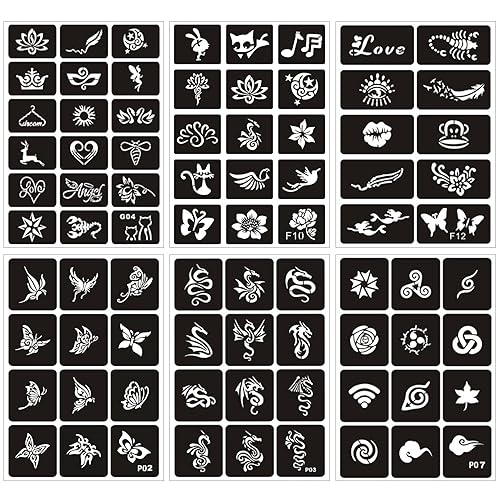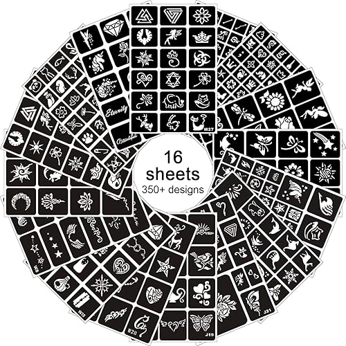 Tattoo Stencils for Kids and Adults - 12 Sheets Henna Kit for Hands,Mehndi,Real Tattoos,and Airbrush,Temporary Tattoo Stencil