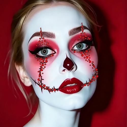 2 Pack Halloween Face Gems Jewels Temporary Face Tattoos Adult,Vampire Makeup Stickers, Cat Blood Tattoos Temporary,Halloween Cosplay Day of the Dead Decorations