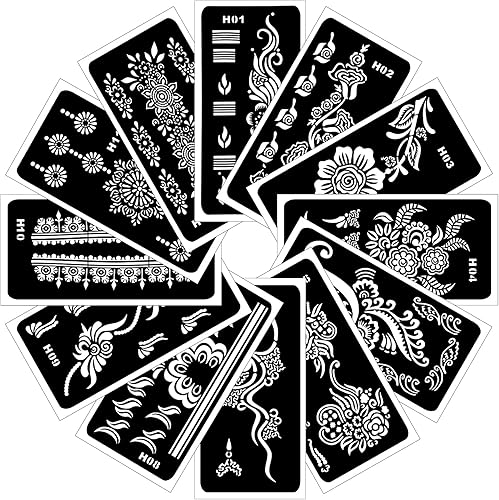 Tattoo Stencils for Kids and Adults - 12 Sheets Henna Kit for Hands, Mehndi, Real Tattoos, and Airbrush,Temporary Tattoos Stencil