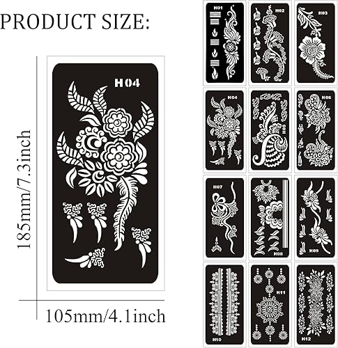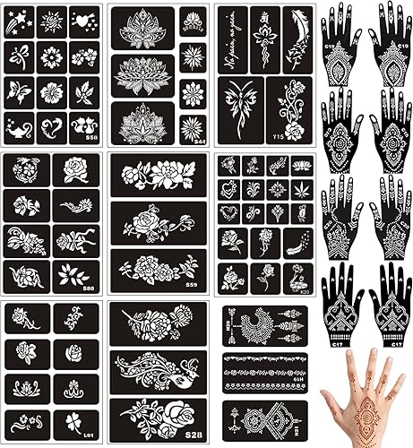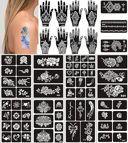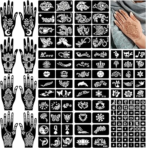 Tattoo Stencils for Kids and Adults - 12 Sheets Henna Kit for Hands,Mehndi,Real Tattoos,and Airbrush