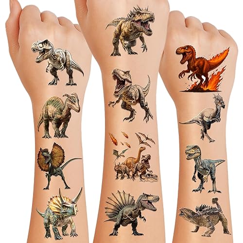 Dinosaur Temporary Tattoos for Kids - 96 PCS Pre-Cut, Long Lasting & Waterproof Dino Tattoos - Fun Birthday Party Favors, Supplies & Decorations - Surprise Gifts for Boys and Girls, Classroom Prizes