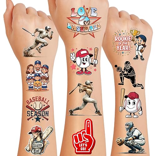 Baseball Tattoos for Kids - 96 PCS Pre-Cut, Long Lasting & Waterproof Temporary Tattoos - Baseball Birthday Party Favors, Supplies & Decorations - Surprise Gifts for Boys and Girls, Classroom Prizes