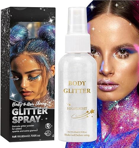 Glitter Spray, Body Glitter Spray, Body Shimmer Sprayer, Widely Applied, Long Shiny Retention, 80ml for Women Men Skin Face Clothes Stage Concert