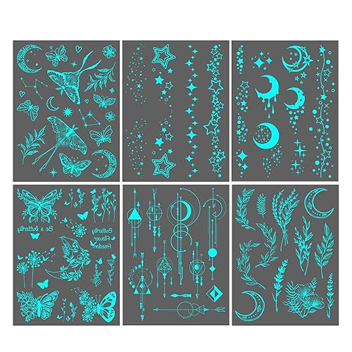 Star Temporary T Attoos, 6 Pieces Luminous Body Sticker, Luminous Flower Face Body Art Sticker, Easy Peel & Apply, Waterproof Adhesive, 12x15.8cm for Festival Holidays Themed Events