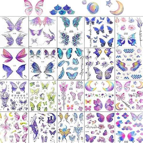 20Pcs Glitter Butterfly Temporary Tattoos, Waterproof Face and Body Stickers for Eye and Cheek Decor, Pool Parties and Makeup
