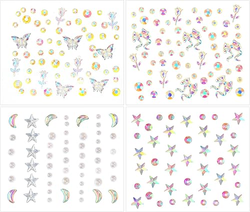 4 Sheets Face Rhinestones Acrylic Rhinestones for Face, Star Moon Pearl Eye Gems Butterfly Shaped Faces Stickers for Women's Holiday Accessories Nail Decorations