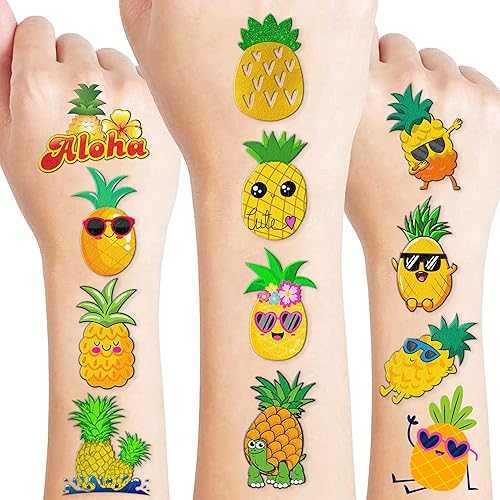 Pineapple Temporary Tattoos – 60 PCS (5 Sheets) Gold Summer Theme Birthday Party Favors, Cute Stickers for Kids Boys Girls, Classroom Prizes, Carnival Holiday Gifts