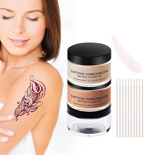 Tattoo Cover Up Makeup,2 Colors Sweatproof & Waterproof Tattoo Cover Up Concealer for Scars,Spots,Stretch Marks,Blemishes and Veins,Long-Lasting Body Concealer Set Men and Women (B)