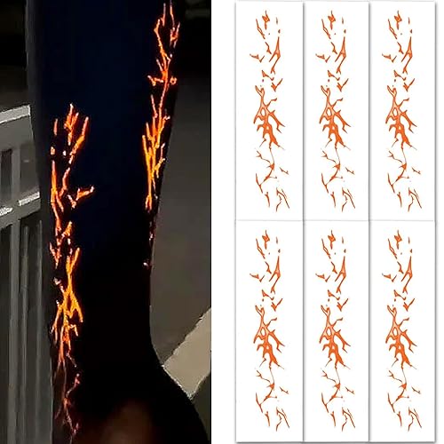 Lightning Glow-in-the-Dark Tattoo Stickers, 6pc Glow in The Dark Temporary Tattoos, Lightning Strips Half Arm Fake Tattoo Sleeves for Adult, Blacklight Body Stickers Rave Party Supplies (MIX)