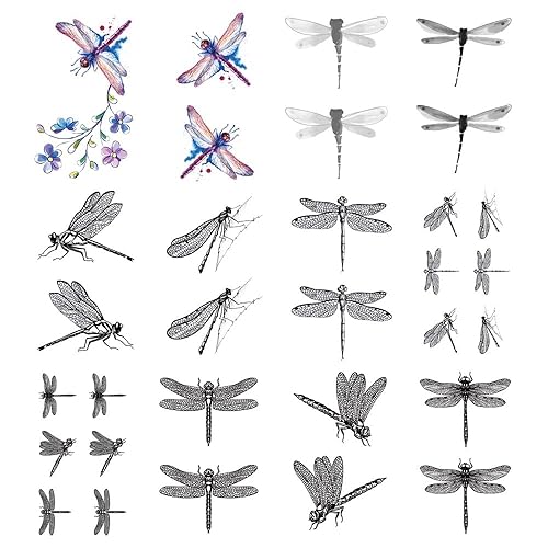 Dragonfly Temporary Tattoo Sticker Waterproof Insects Adult Men Women Hand Arm Shoulders Body Art 10.5X6cm Set of 12 (SF293)