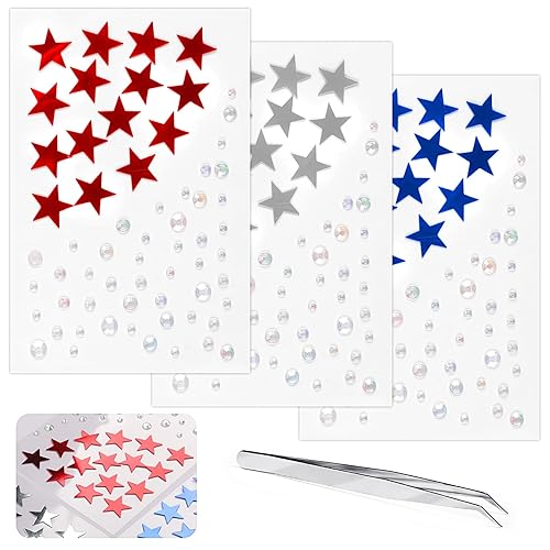 Penta Angel Star Face Costume Jewels Stick on Makeup Gems Stickers for Hair Body Halloween Festival Holiday Party Dress Up Crafts (Red, Black, Clear)