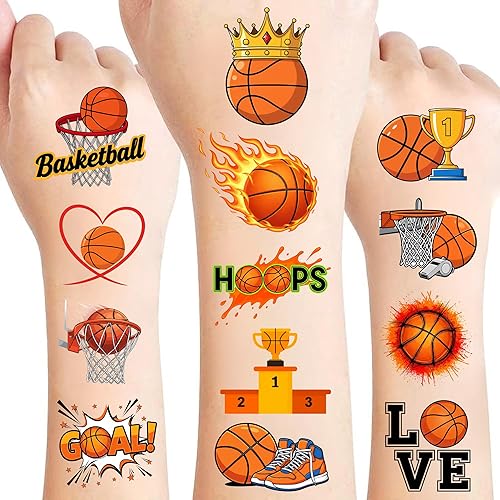 50 PCS Basketball Temporary Tattoos for Kids, Hawaiian Luau Themed Tattoos for Birthday Party Supplies Pool Party Tropical Beach Tattoo Stickers for Kids Boys Girls Party Bag Filler