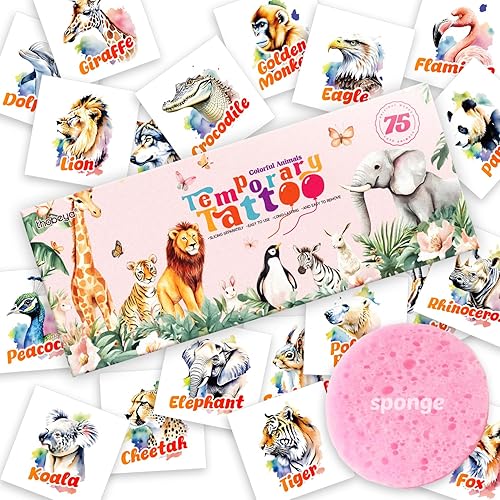 72 PCS ABC letters tattoo Wildlife Jungle Animal Pre-Cut Temporary Tattoos for Kids, African animals Tattoos, Party Decorations Supplies Favors, Zoo Fake Tattoo