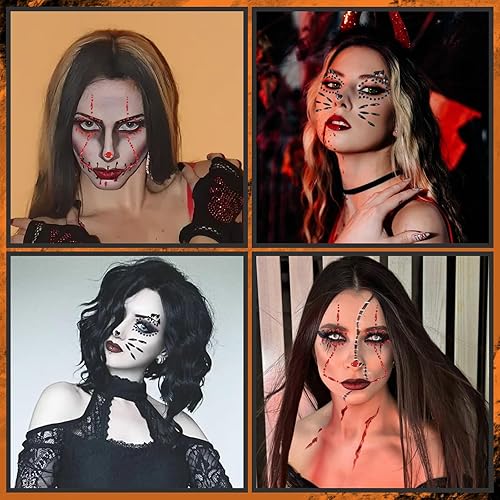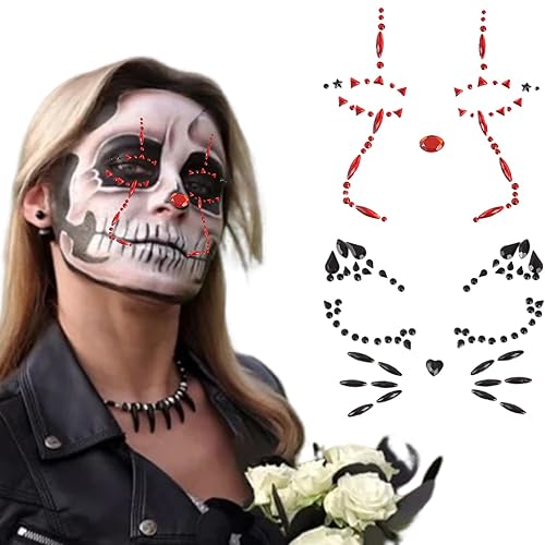 Halloween Temporary Face Jewelry Tattoo Black Red Rhinestone for Adults and Kids Party Makeup Accessory