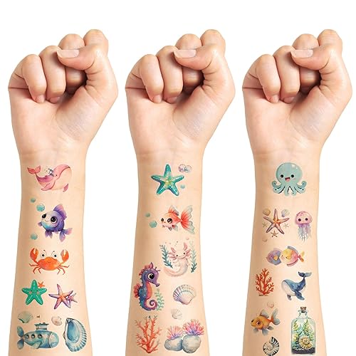 80 Piece Ocean & Sea Creature Temporary Tattoo Set - Shark, Whale & Marine Life Waterproof Fake Tattoos for Themed Parties, Costumes & Events