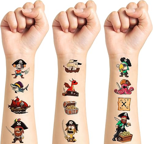 69PCS Pirate Adventure Temporary Tattoos Set, Nautical Treasure & Pirate Ship Designs for Party Favors, Birthday Decorations, Classroom Rewards & Halloween Gifts (Pre-Cut Fake Tattoo Stickers)