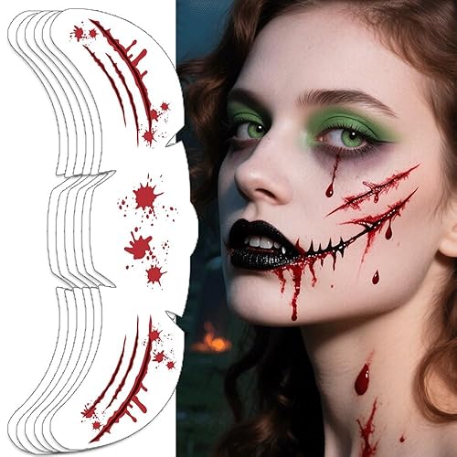Realistic Blood Vessel Scar Tattoos Stickers - Waterproof Fake Wound Makeup for Halloween, Party - 6 Sheets Temporary Tattoos for Face, Arm, Collarbone, Body - DIY Horror Accessories Men Women