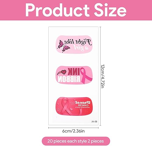 60Pcs Breast Cancer Tattoos, Breast Cancer Tattoos Temporary Prevent Breast Cancer Awareness Accessories Decorations, Pink Stickers for Spirit Week, Temporary Tattoos Stickers for Women Face Body