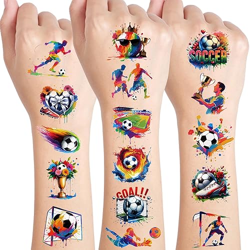 Konsait 20 Sheets Watercolor Soccer Tattoos Temporary for Kids Boys Sports Tattoos Football Tattoo Ball Tattoo Soccer Themed Party Favors 161 PCS
