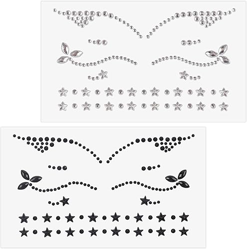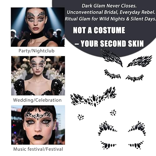 Face Jewels Stick on Rhinestone Temporary Tattoos for Halloween Festival Party Body Face Gems Adhesive Stickers 4 sheets Black