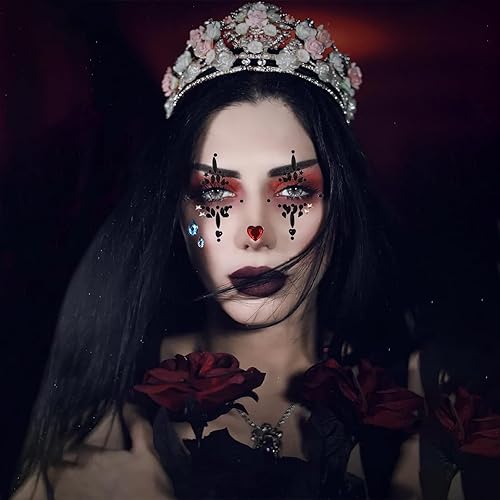 Halloween Self Adhesive Face Gems for Makeup, Red Black Clear Festival Jewels, Hair Gems, Y2K Star Rhinestone Stickers for Face, Eye, Makeup, Body