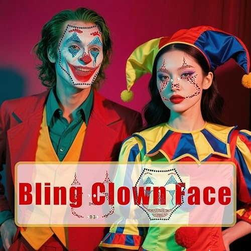 Halloween Clown Face Makeup Stickers Gems Jewels Makeup Sticker 3D Gemstone Face Stickers for Halloween Rave Cosplay Party 2 Pcs