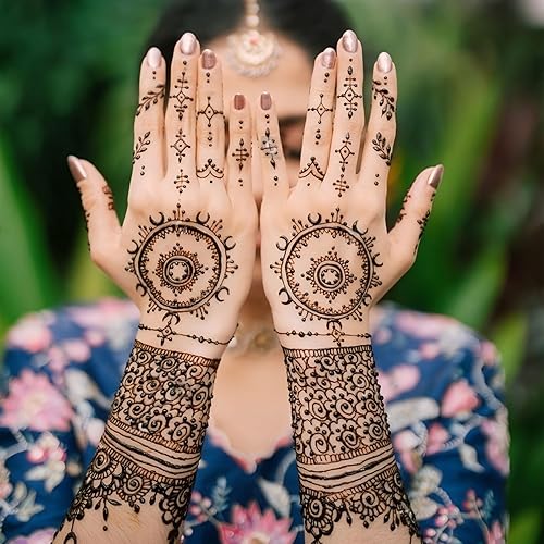 Henna Tattoo Sticker for Hands, 18 Pairs Waterproof Henna Temporary Tattoo, Self Adhesive Kit, Easy to Use Stencils for Women Girls