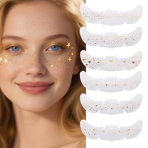 Face Glitter Freckles Tattoo, 6 Pieces Gold Mixed Shapes, Sparkle Makeup Patches for Festival, Party, Rave