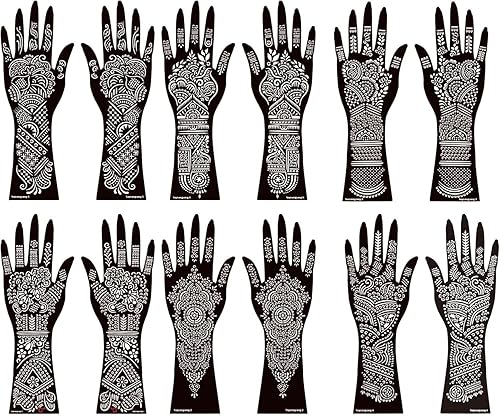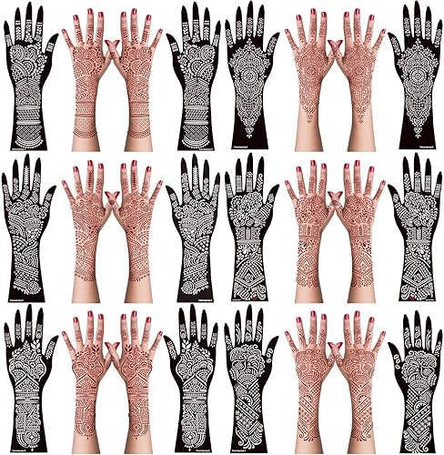 Henna Tattoo Stencils Kit, 18Temporary Tattoo Stenci Indian Mehndi Designs for Hands, Traditional Body Art