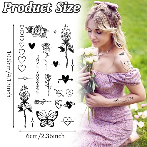 8 Sheets Realistic Temporary Tattoos for Adults, Minimalist Fresh Series Tattoo Stickers for Women, Waterproof White & Black Mixed Styles Tatuajes Temporales Para Mujeres Plant Animal Sentence